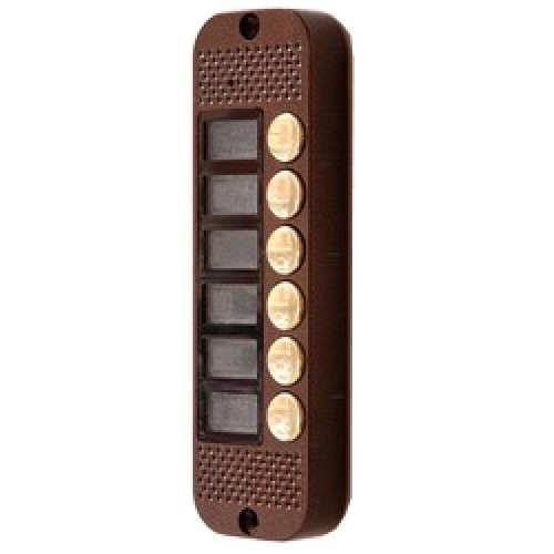Антивандальная вызывная видеопанель с камерой; накладная; до 6-ти абонентов; CCIR (ч/б), разрешение 400 твл; угол обзора камеры - 78° по горизонтали и 55° по вертикали; ИК подсветка. Функция кодонаборной панели. Аудиоканал на базе чипа MOTOROLA. Cовместима с мониторами Gardi, СОММАХ, Kenwei, Kocom, Slinex и др.; 200х63х22 мм