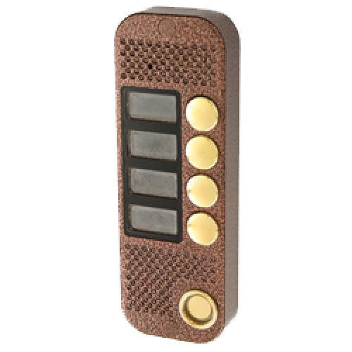 Антивандальная вызывная видеопанель с камерой; накладная; до 4-х абонентов; CCIR (ч/б), разрешение 400 твл; угол зрения камеры - 74°; встроенный считыватель; функция кодонаборной панели. Козырёк на 30 град. приобретается отдельно. Аудиоканал на базе чипа MOTOROLA. Cовместима с мониторами Gardi, СОММАХ, Kenwei, Kocom, Slinex и др.; 180х63х22 мм